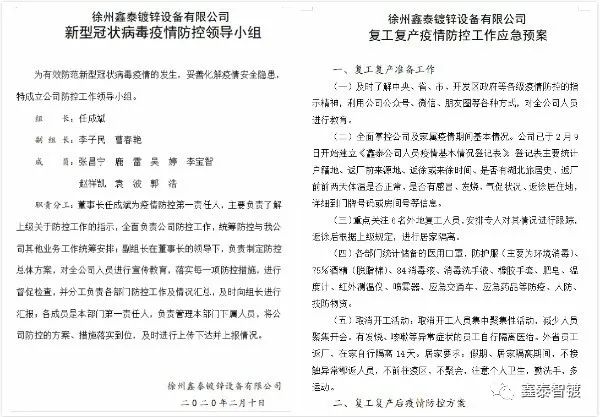 « Xuzhou Xintai оцинкованное оборудование Co., Ltd. возобновляет работу по профилактике и борьбе с эпидемией плана действий в чрезвычайных ситуациях».