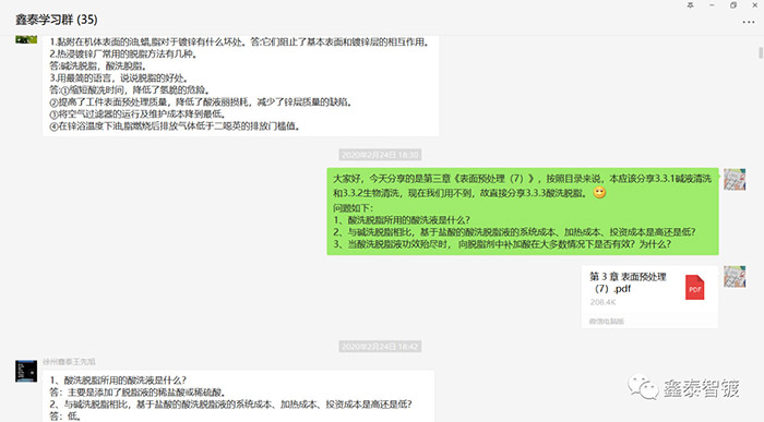 При работе на дому нельзя пренебрегать профессиональными знаниями. Основываясь на платформе WeChat, создайте учебную группу, которая будет отвечать за онлайн - обмен опытом оцинкования и интерактивные вопросы и ответы.